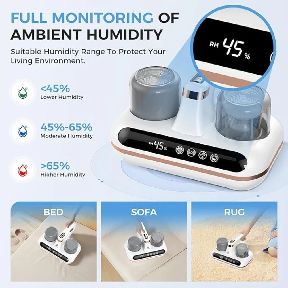 • 【EFFICIENT & FAST】Using 253.7nm UV-C light,Physics Ultrasound,Powerful high frequency tapping,hurricane deep breath,Super suction power,The 5-in-1 quick cleaning method allows you to get the best mattress cleaning experience and bring you a comprehensive and healthy home environment.