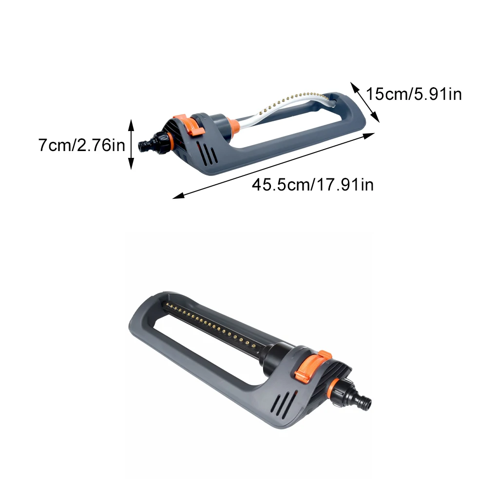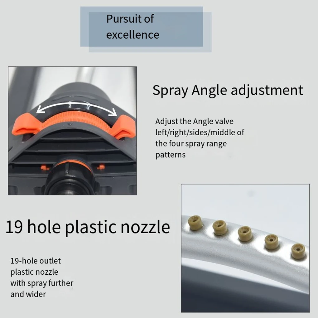 Lawn Sprinkler: The 19 hole plastic nozzle ensures a wide and far-reaching spray, while the adjustable spraying range allows for water conservation