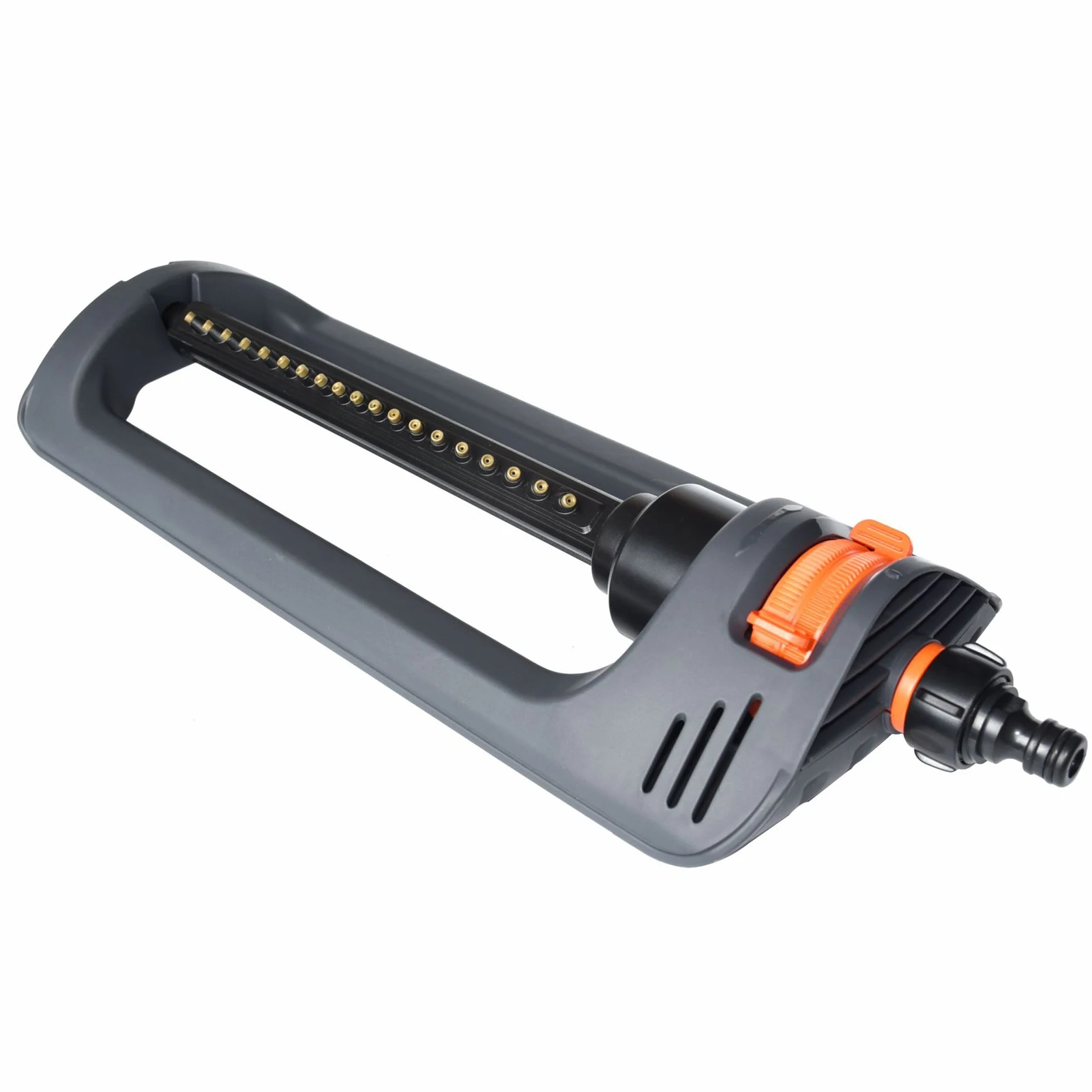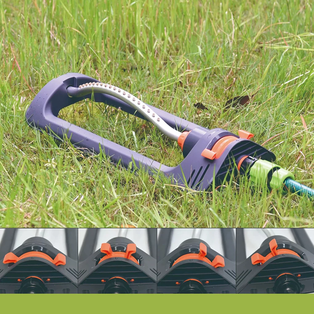 Oscillating Sprinkler: Imitating Raindrops Falling Without Damaging Green Plants, the 19 hole plastic nozzle sprays farther and wider, saving water with adjustable spraying range