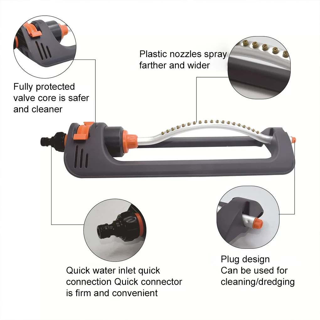 Swing Sprinkler: With its protective valve core and plug feature for clearing nozzles, this oscillating lawn sprinkler is a convenient and effective choice for garden irrigation